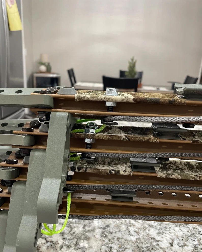Wish I had read the other review, spot on about the difficulty descending with these aiders. I literally have to squat down on the bottom step and loop it around my foot with my hand sometimes. Kit is well made and packs up nicely, easy enough to put together. Maybe running the Amsteel through a different set of holes would work.
